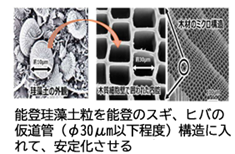このテーマは、能登産の珪藻土を能登産の木材の中に入れ込み、ミクロレベルで複合させる技術を研究開発し、調質性(湿度の調整機能)と難燃性(燃えにくさ)を備えた世界初の木質内装用の複合材料の製品化を目標としています。目標とする製品は、国が進めるグリーン成長戦略の中の木造建築物に関わる部材を提供することができ、また、能登半島地震からの復興に貢献できることを期待しています。